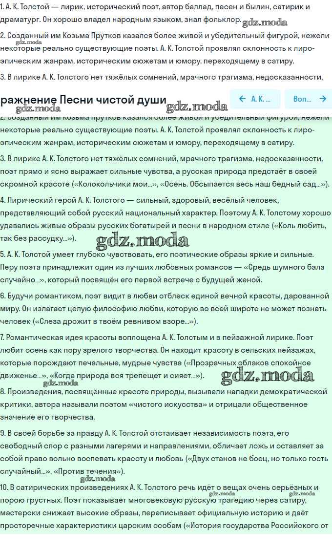 ОТВЕТ на задание № 8 Учебник по Литературе 10 класс Зинин Инновационная школа Базовый уровень