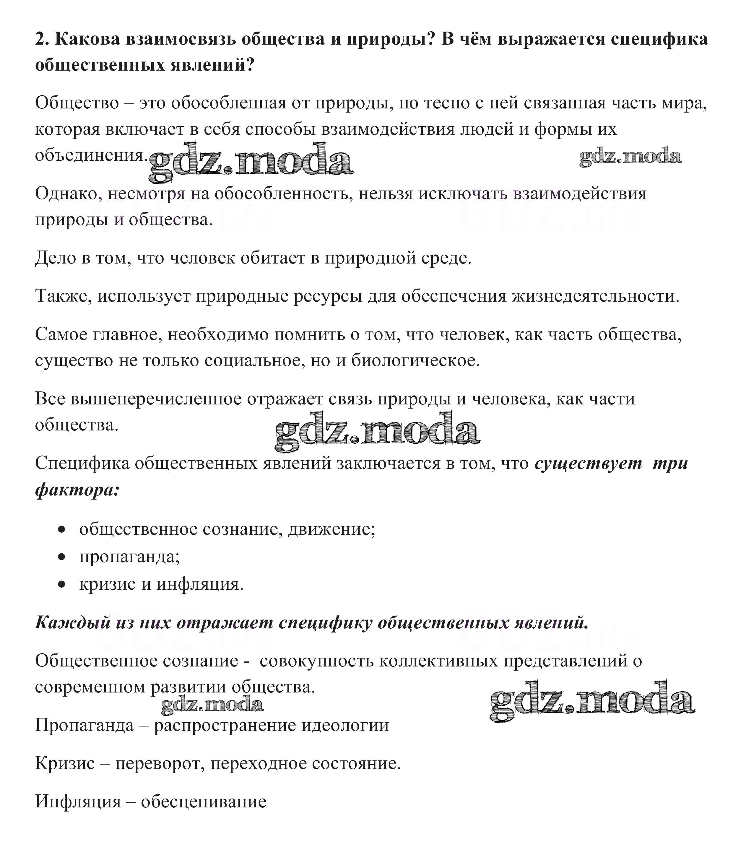 ГДЗ решение к заданию № 2 Обществознание 10 класс Боголюбов Л.Н. Просвещение 2015 Базовый уровень ФГОС бесплатно на гдз.мода!