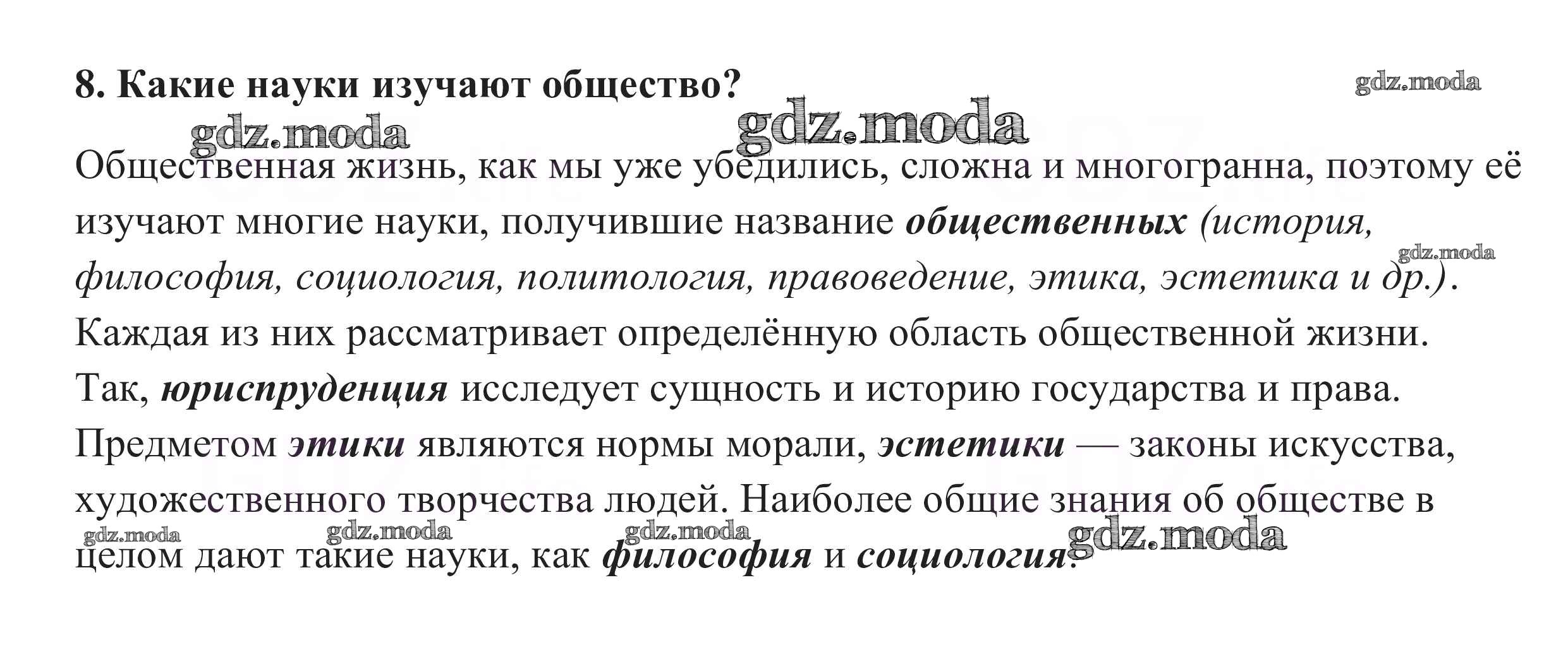 ГДЗ решение к заданию № 8 Обществознание 10 класс Боголюбов Л.Н. Просвещение 2015 Базовый уровень ФГОС бесплатно на гдз.мода!