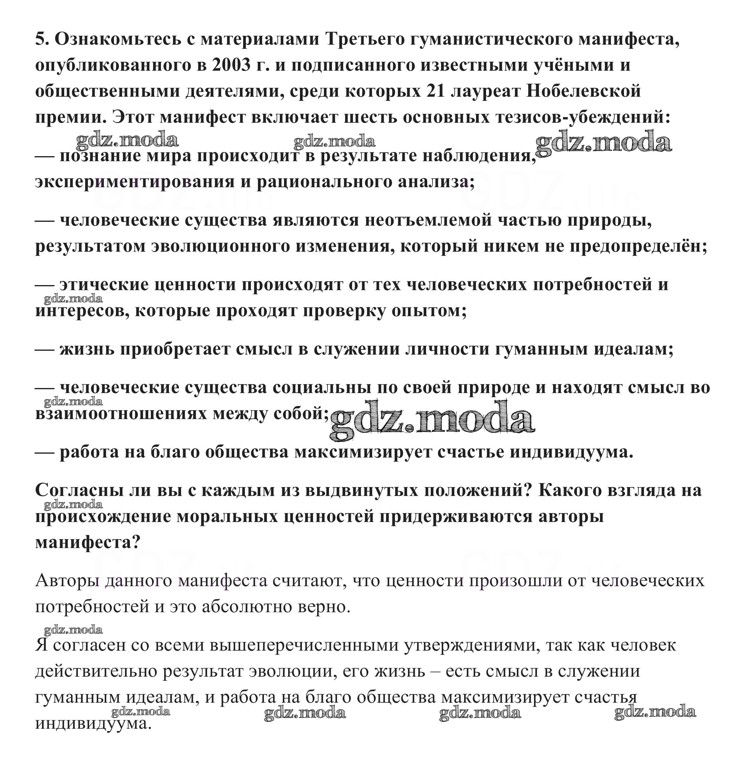 ГДЗ решение к заданию № 5 Обществознание 10 класс Боголюбов Л.Н. Просвещение 2015 Базовый уровень ФГОС бесплатно на гдз.мода!
