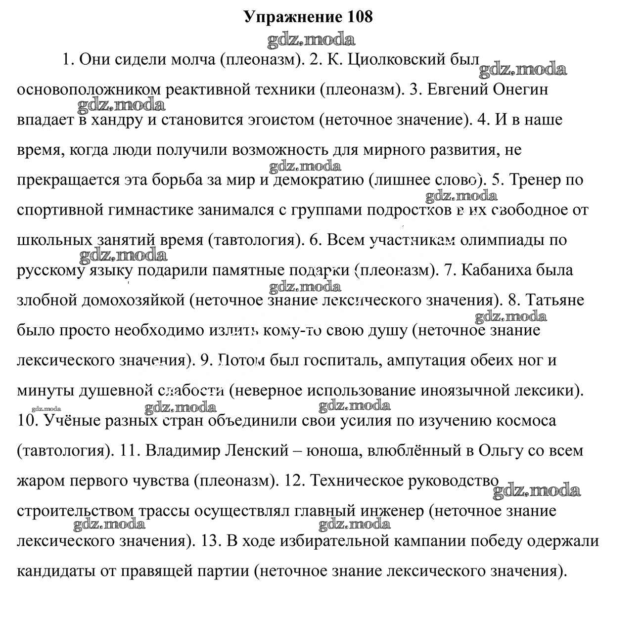 ОТВЕТ на задание № 108 Учебник по Русскому языку 10 класс Леонович