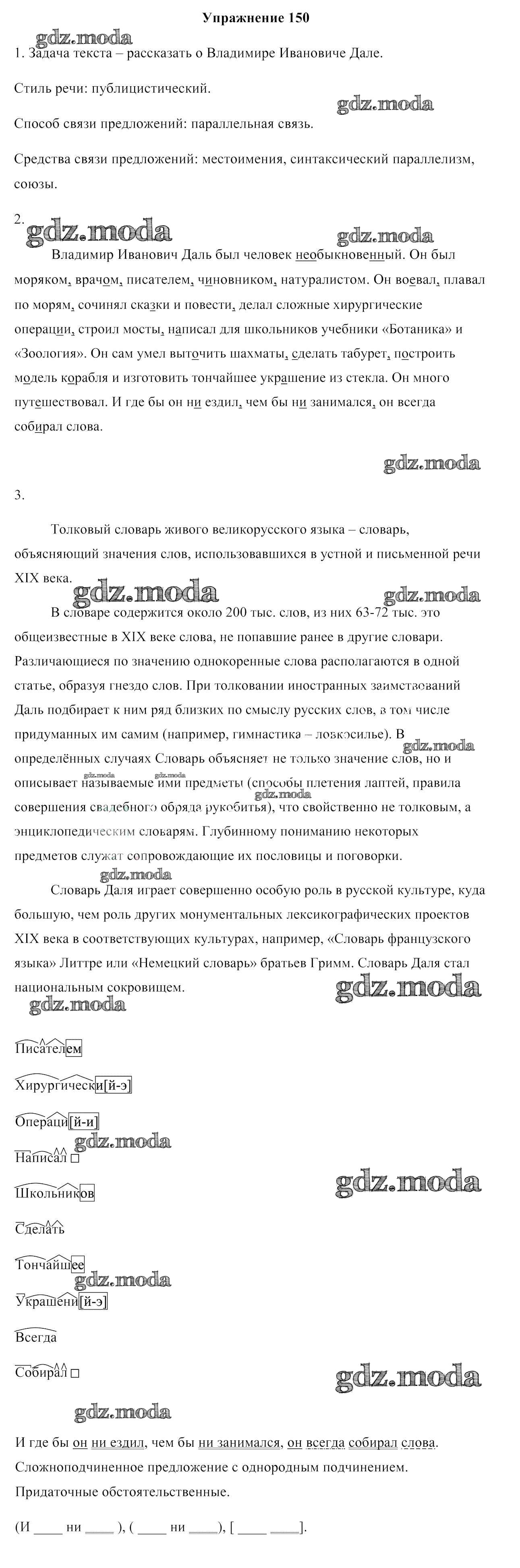 ОТВЕТ на задание № 150 Учебник по Русскому языку 10 класс Леонович
