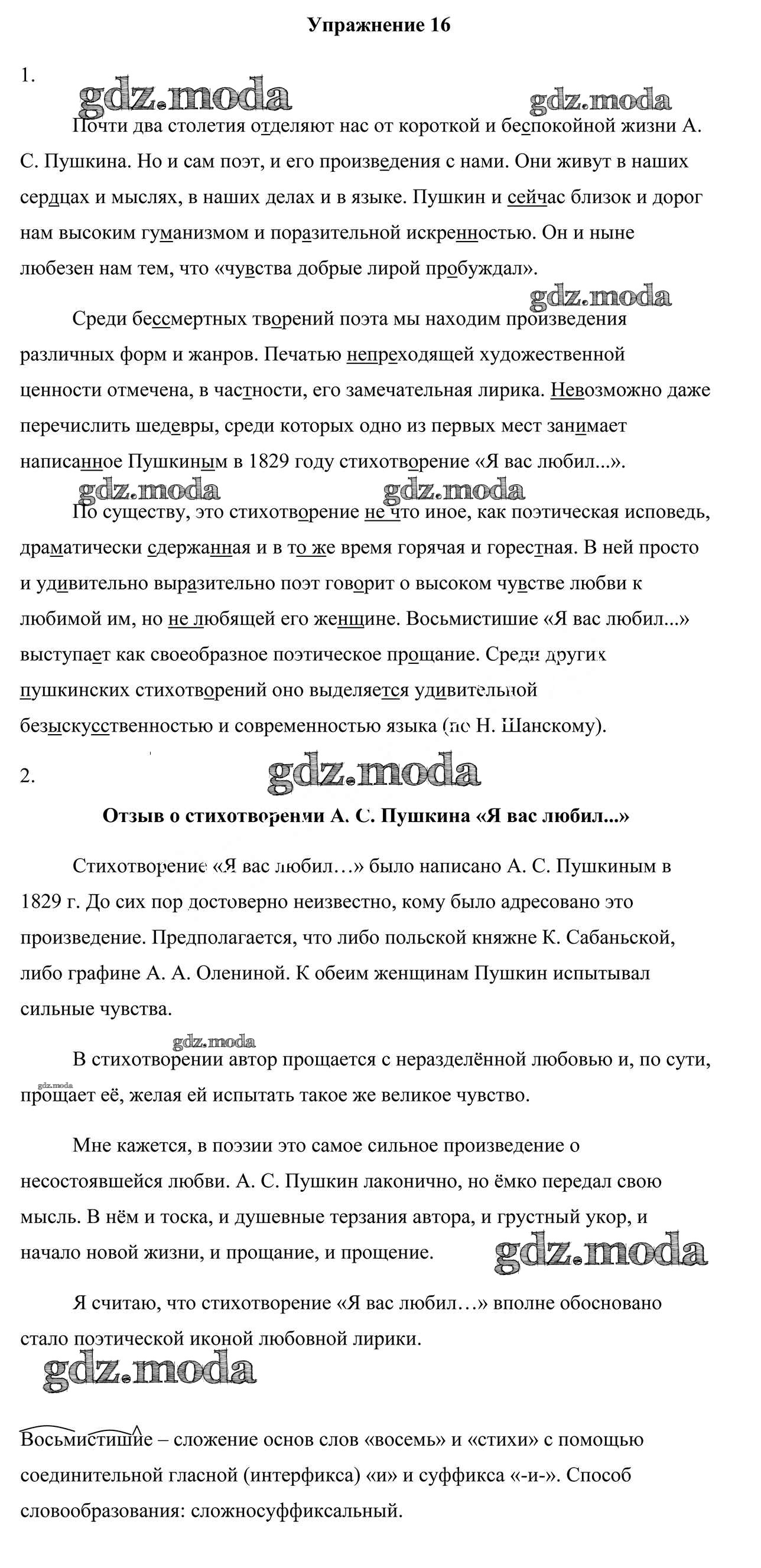 ОТВЕТ на задание № 16 Учебник по Русскому языку 10 класс Леонович