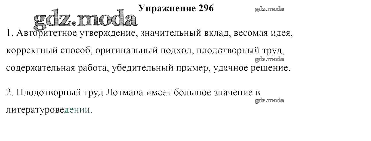 ОТВЕТ на задание № 296 Учебник по Русскому языку 10 класс Леонович