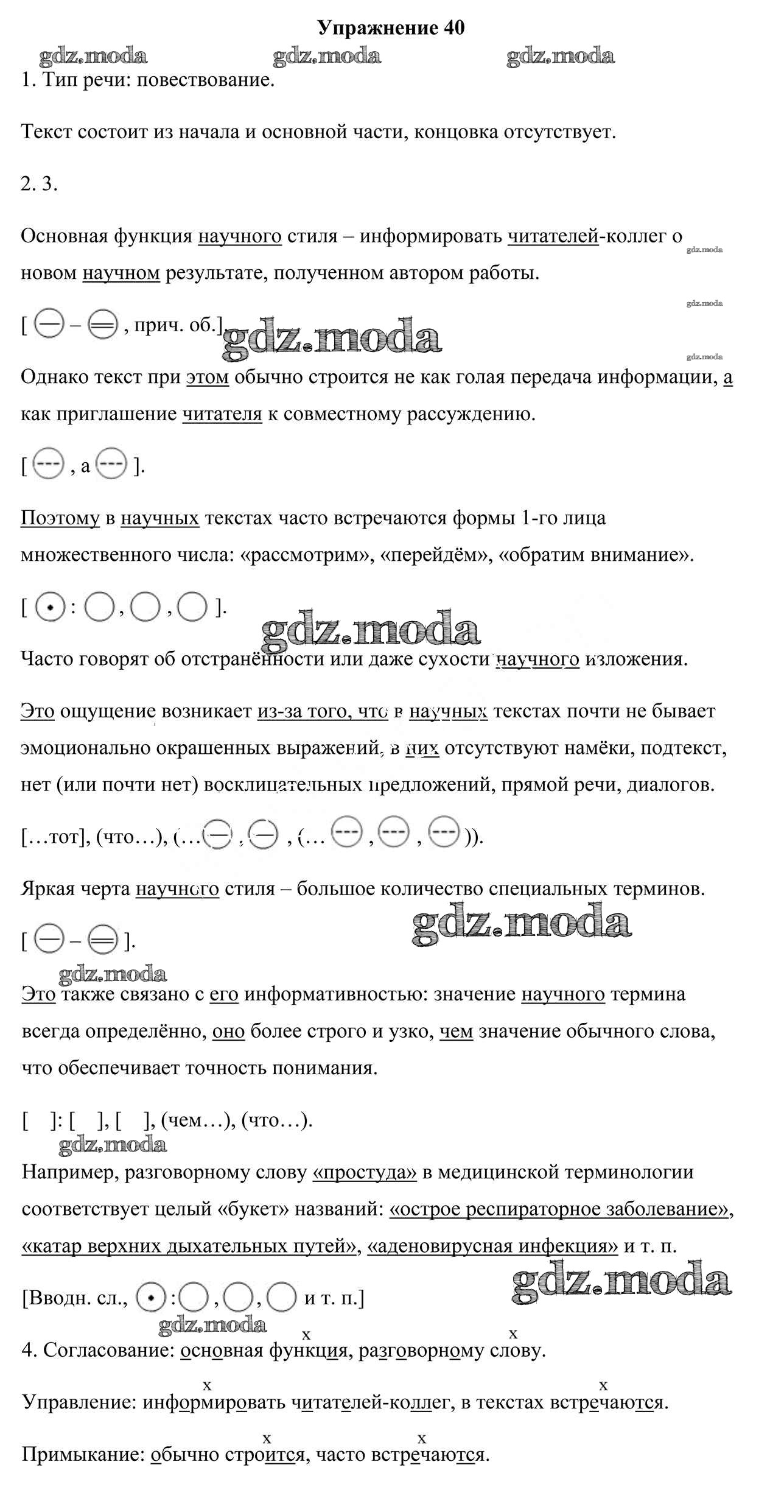 ОТВЕТ на задание № 40 Учебник по Русскому языку 10 класс Леонович