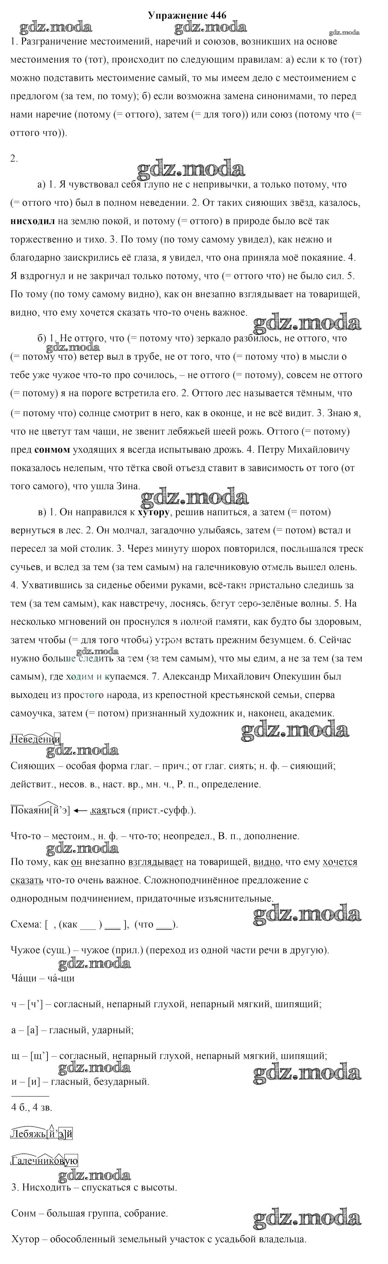 ОТВЕТ на задание № 446 Учебник по Русскому языку 10 класс Леонович