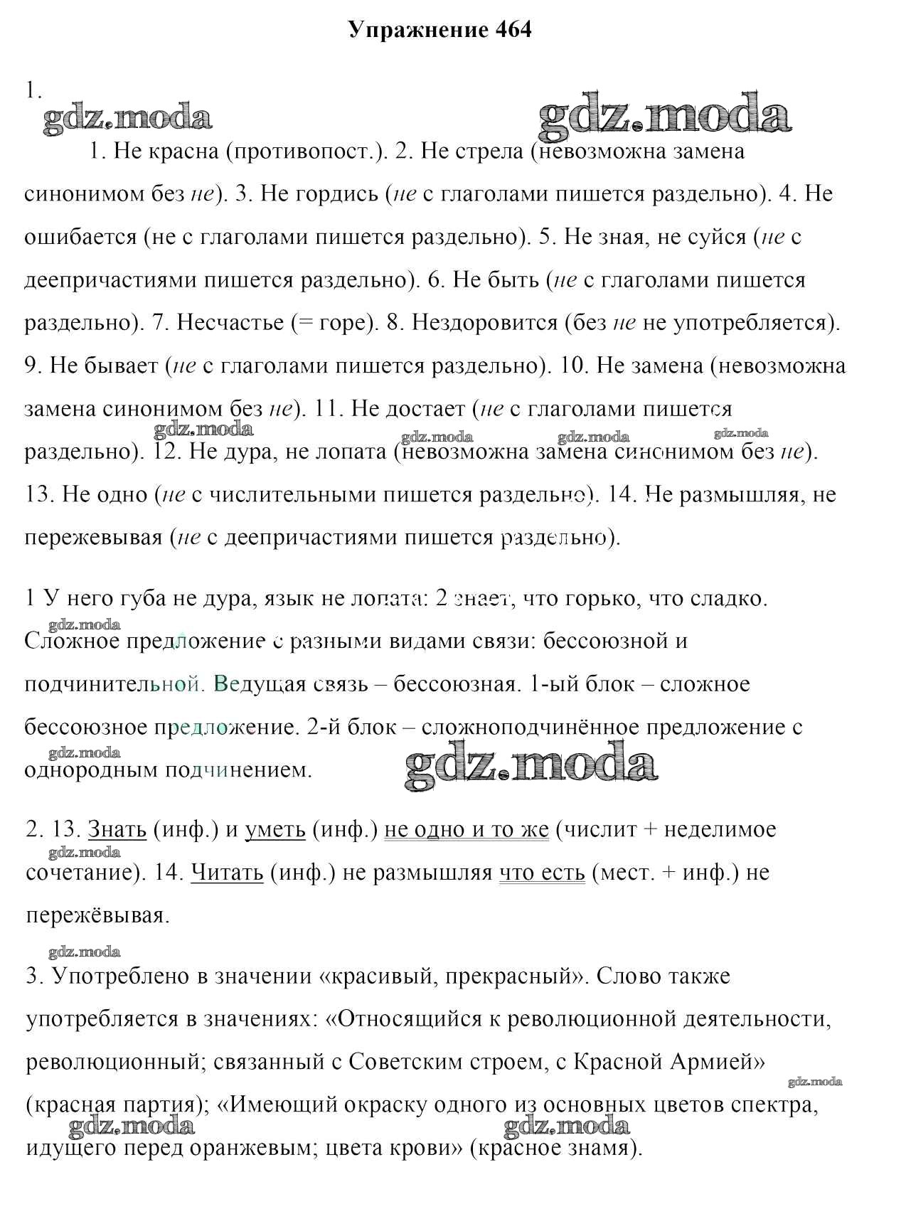 ОТВЕТ на задание № 464 Учебник по Русскому языку 10 класс Леонович