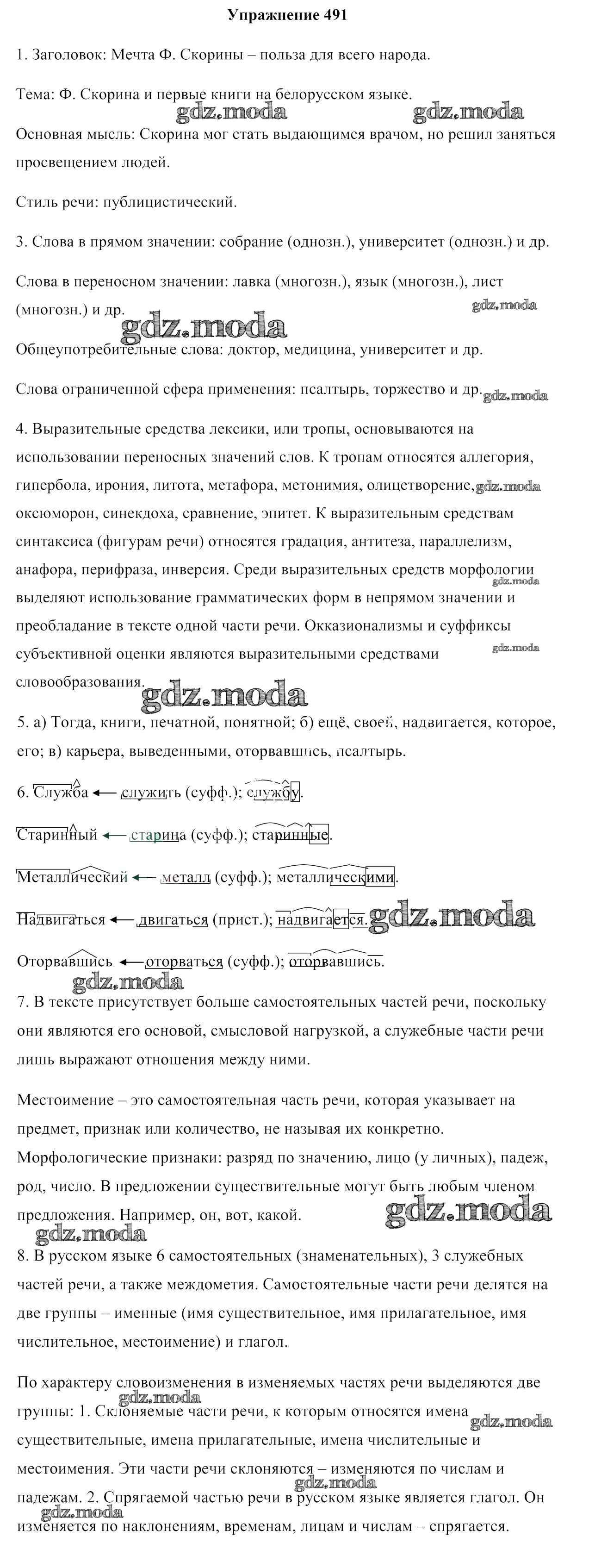 ОТВЕТ на задание № 491 Учебник по Русскому языку 10 класс Леонович
