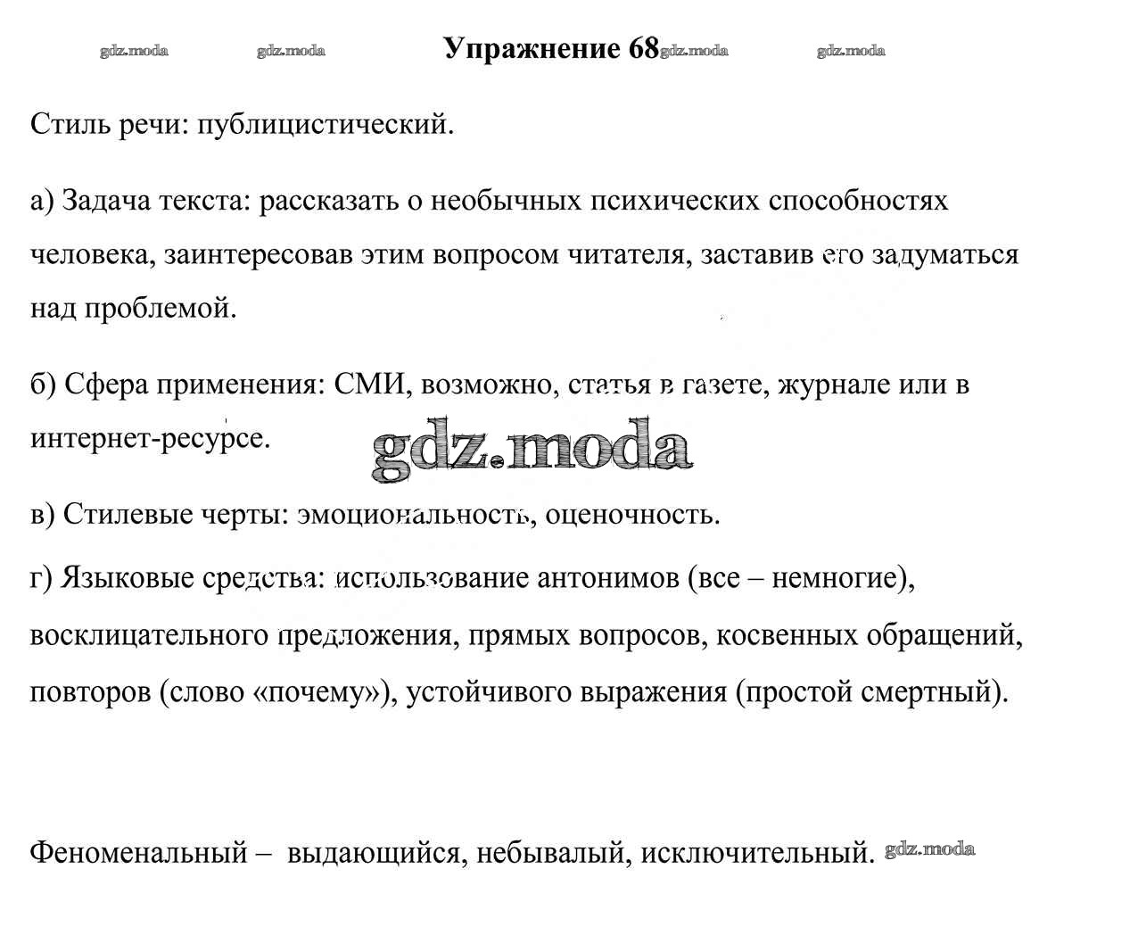 ОТВЕТ на задание № 68 Учебник по Русскому языку 10 класс Леонович