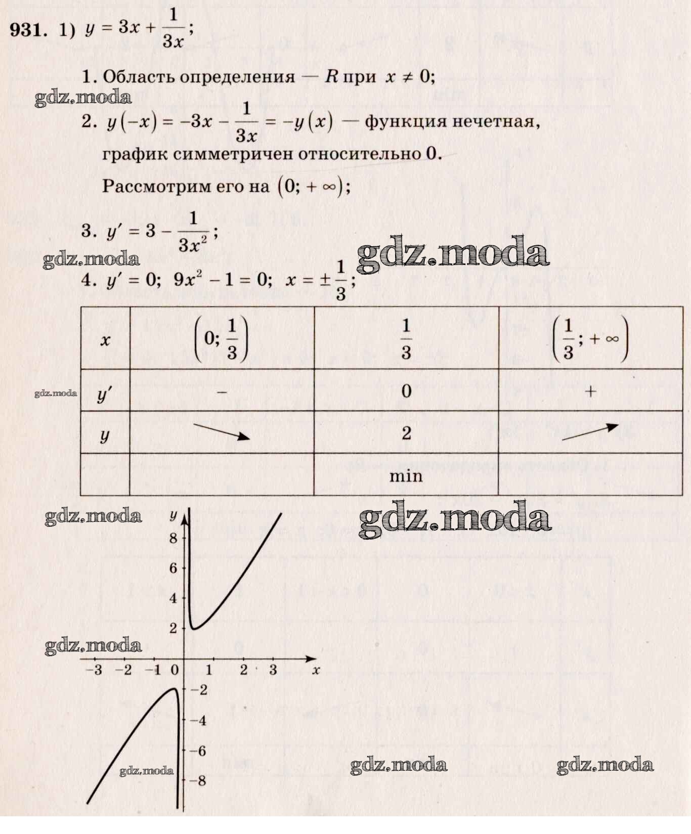 ГДЗ решение к заданию № 931 Алгебра и начала математического анализа 10-11 класс Базовый и углубленный уровни Алимов Ш.А. Просвещение 2015 Базовый и углубленный уровень ФГОС бесплатно на гдз.мода!