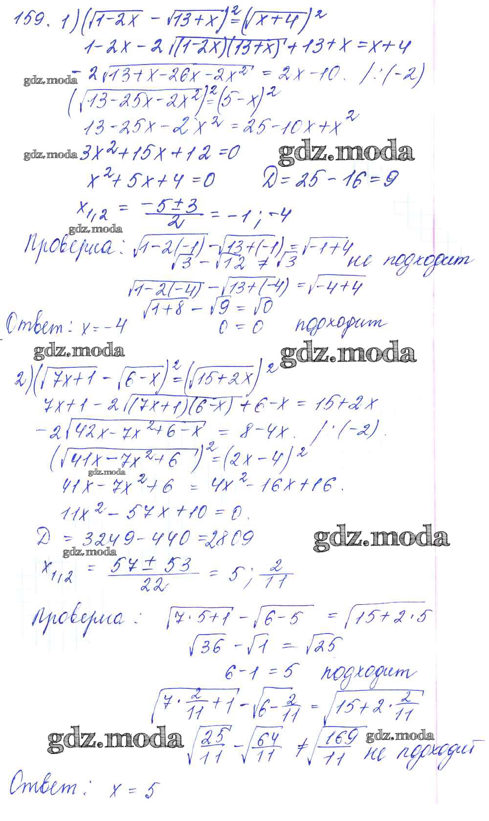 ГДЗ решение к заданию № 159 Алгебра и начала математического анализа 10-11 класс Базовый и углубленный уровни Алимов Ш.А. Просвещение 2015 Базовый и углубленный уровень ФГОС бесплатно на гдз.мода!