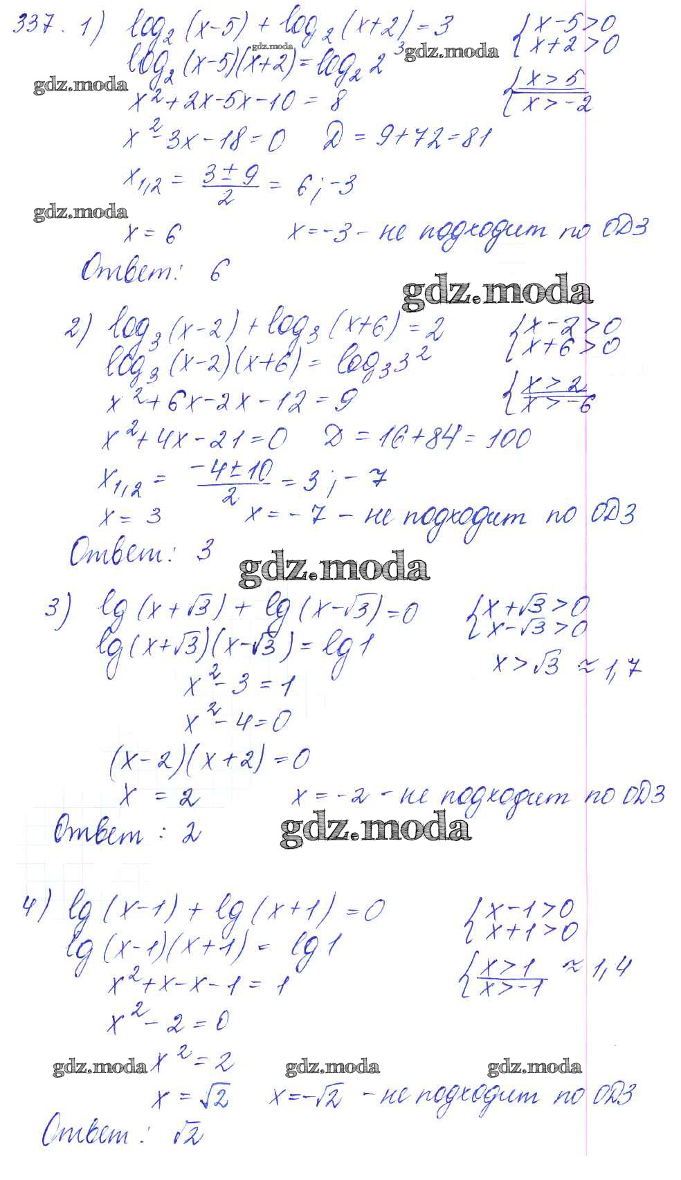 ГДЗ решение к заданию № 337 Алгебра и начала математического анализа 10-11 класс Базовый и углубленный уровни Алимов Ш.А. Просвещение 2015 Базовый и углубленный уровень ФГОС бесплатно на гдз.мода!