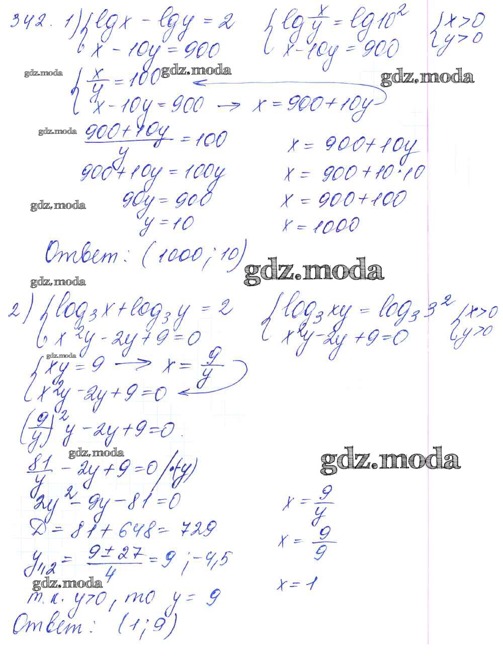 ГДЗ решение к заданию № 342 Алгебра и начала математического анализа 10-11 класс Базовый и углубленный уровни Алимов Ш.А. Просвещение 2015 Базовый и углубленный уровень ФГОС бесплатно на гдз.мода!