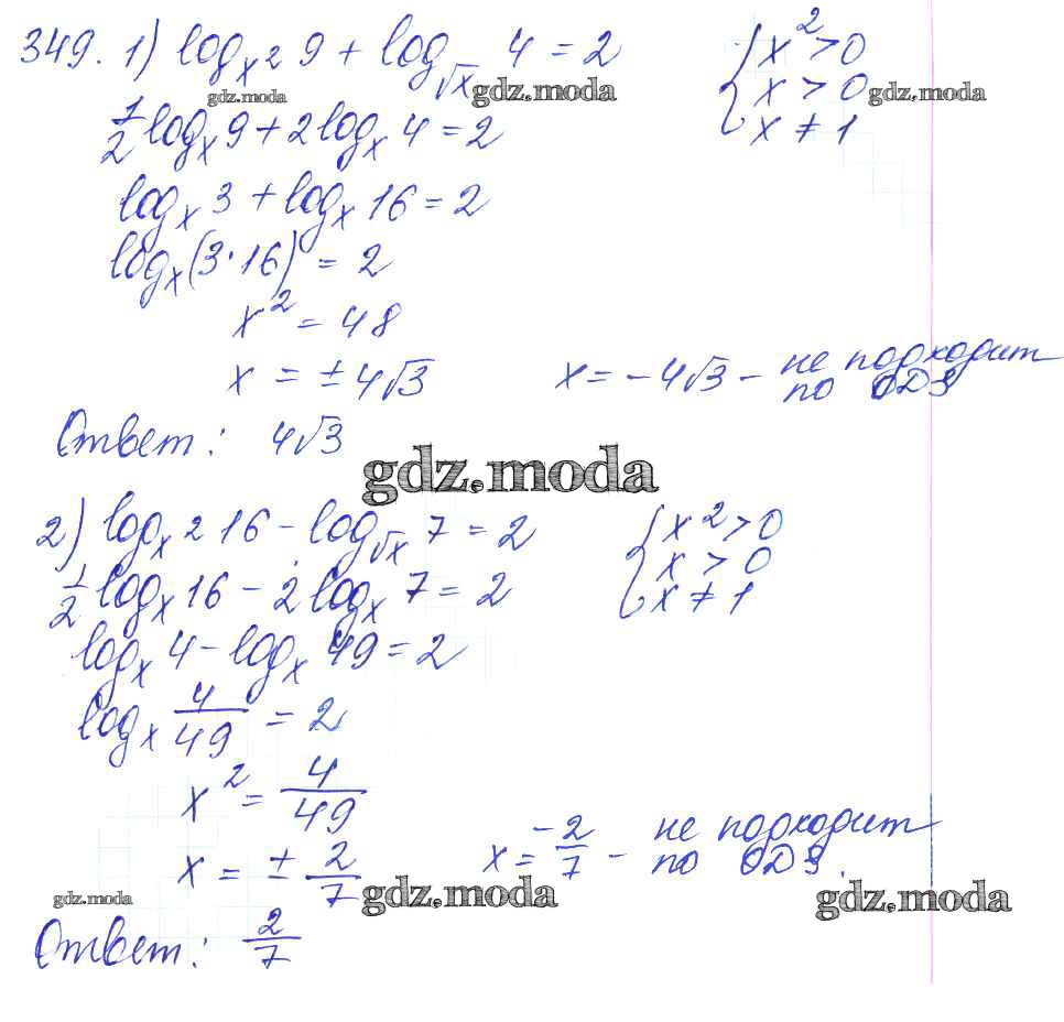 ГДЗ решение к заданию № 349 Алгебра и начала математического анализа 10-11 класс Базовый и углубленный уровни Алимов Ш.А. Просвещение 2015 Базовый и углубленный уровень ФГОС бесплатно на гдз.мода!