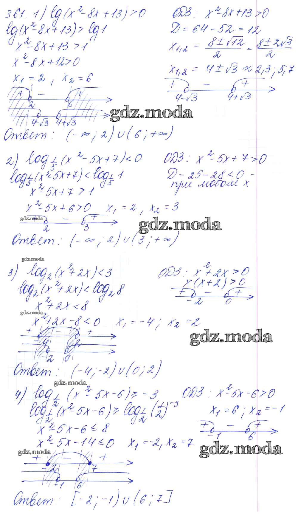 ГДЗ решение к заданию № 361 Алгебра и начала математического анализа 10-11 класс Базовый и углубленный уровни Алимов Ш.А. Просвещение 2015 Базовый и углубленный уровень ФГОС бесплатно на гдз.мода!