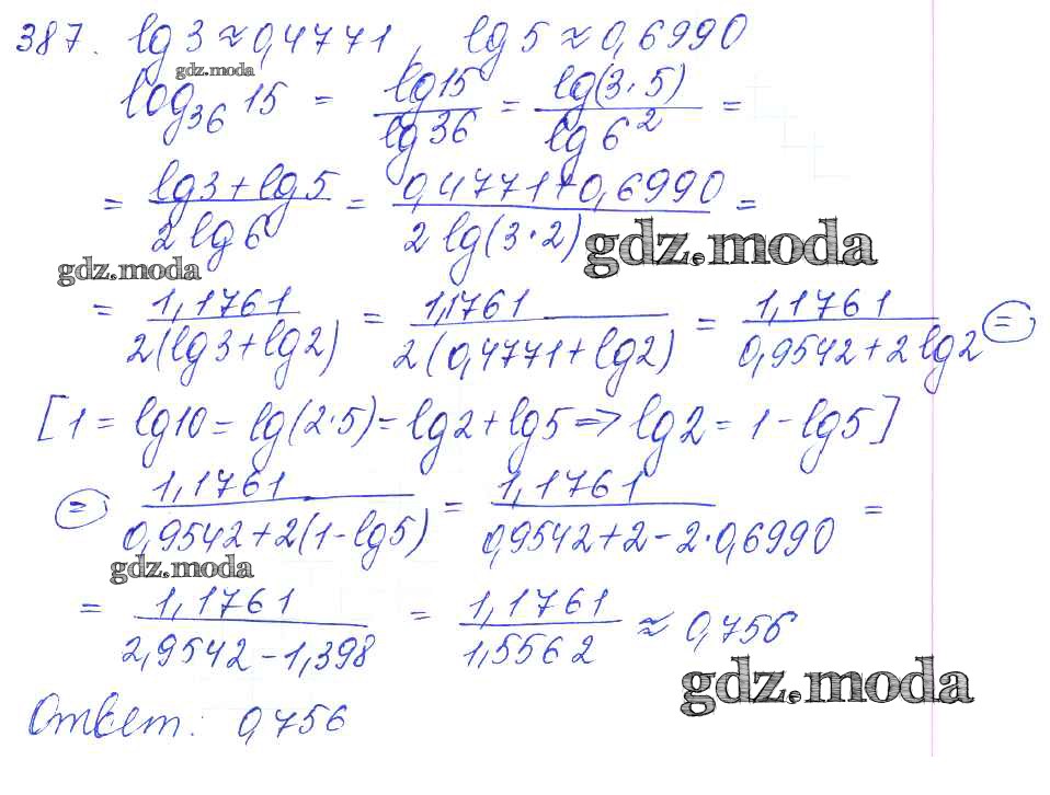 ГДЗ решение к заданию № 387 Алгебра и начала математического анализа 10-11 класс Базовый и углубленный уровни Алимов Ш.А. Просвещение 2015 Базовый и углубленный уровень ФГОС бесплатно на гдз.мода!