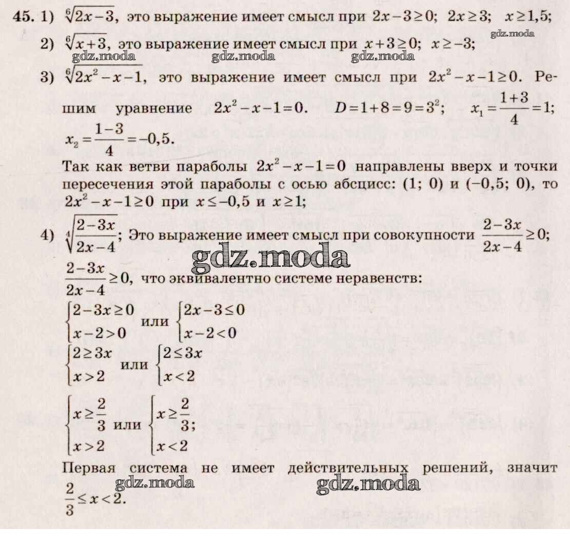 ГДЗ решение к заданию № 45 Алгебра и начала математического анализа 10-11 класс Базовый и углубленный уровни Алимов Ш.А. Просвещение 2015 Базовый и углубленный уровень ФГОС бесплатно на гдз.мода!