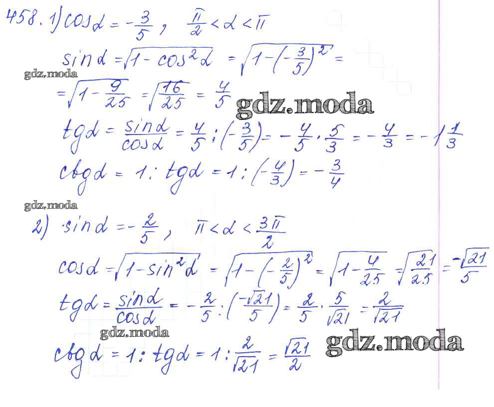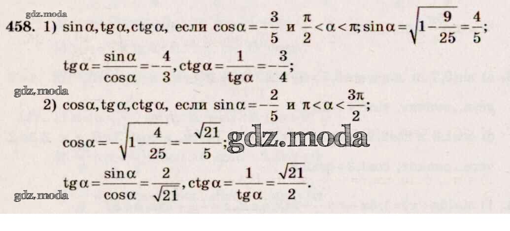 ГДЗ решение к заданию № 458 Алгебра и начала математического анализа 10-11 класс Базовый и углубленный уровни Алимов Ш.А. Просвещение 2015 Базовый и углубленный уровень ФГОС бесплатно на гдз.мода!