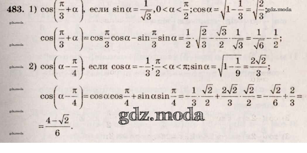 ГДЗ решение к заданию № 483 Алгебра и начала математического анализа 10-11 класс Базовый и углубленный уровни Алимов Ш.А. Просвещение 2015 Базовый и углубленный уровень ФГОС бесплатно на гдз.мода!