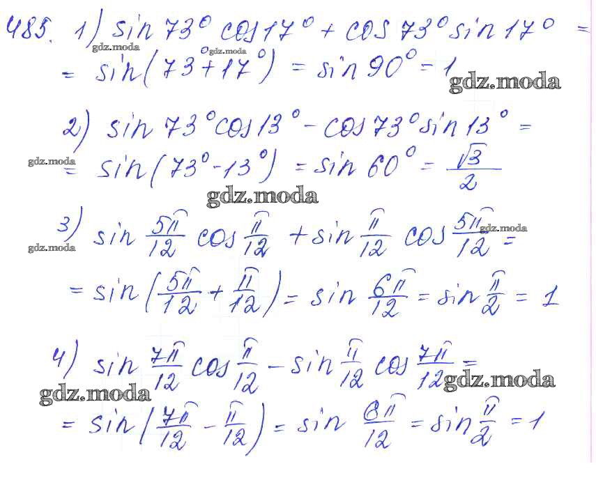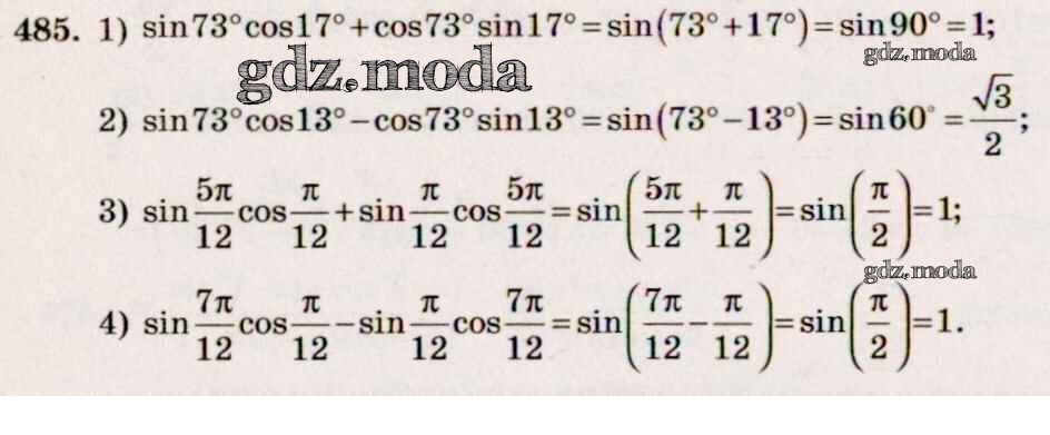 ГДЗ решение к заданию № 485 Алгебра и начала математического анализа 10-11 класс Базовый и углубленный уровни Алимов Ш.А. Просвещение 2015 Базовый и углубленный уровень ФГОС бесплатно на гдз.мода!