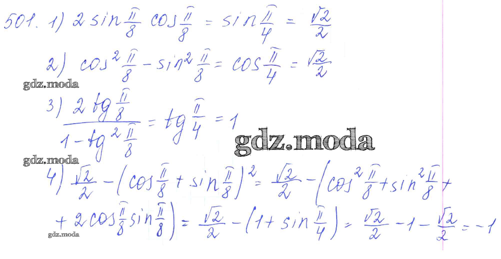 ГДЗ решение к заданию № 501 Алгебра и начала математического анализа 10-11 класс Базовый и углубленный уровни Алимов Ш.А. Просвещение 2015 Базовый и углубленный уровень ФГОС бесплатно на гдз.мода!