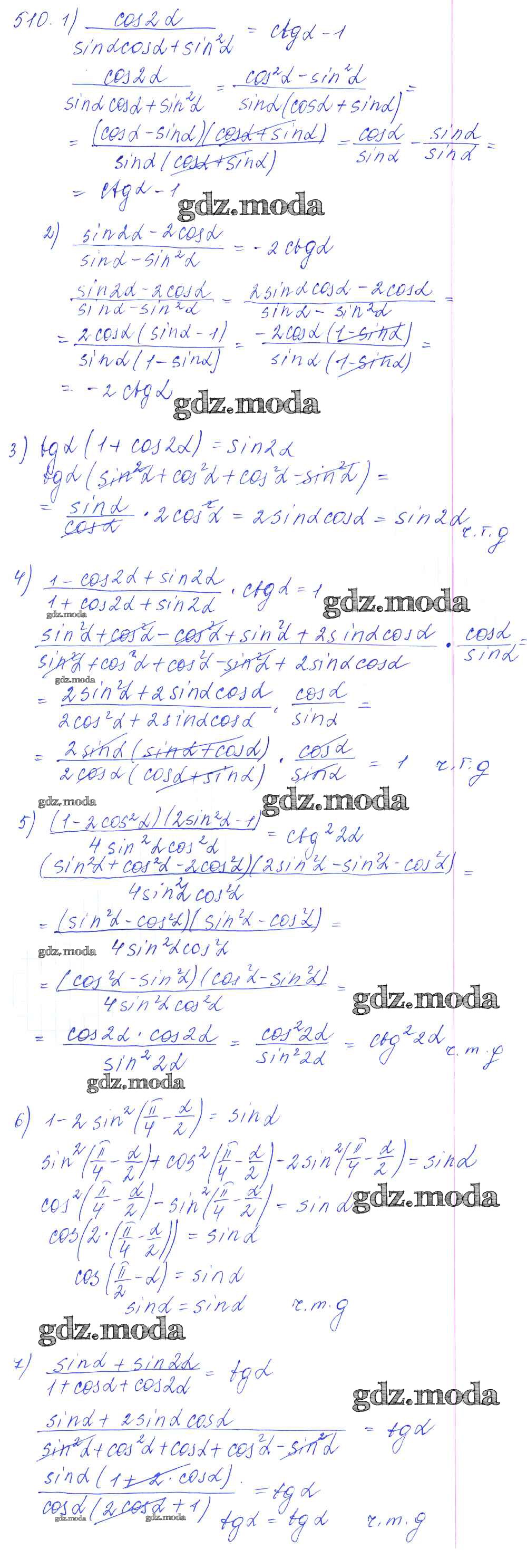 ГДЗ решение к заданию № 510 Алгебра и начала математического анализа 10-11 класс Базовый и углубленный уровни Алимов Ш.А. Просвещение 2015 Базовый и углубленный уровень ФГОС бесплатно на гдз.мода!