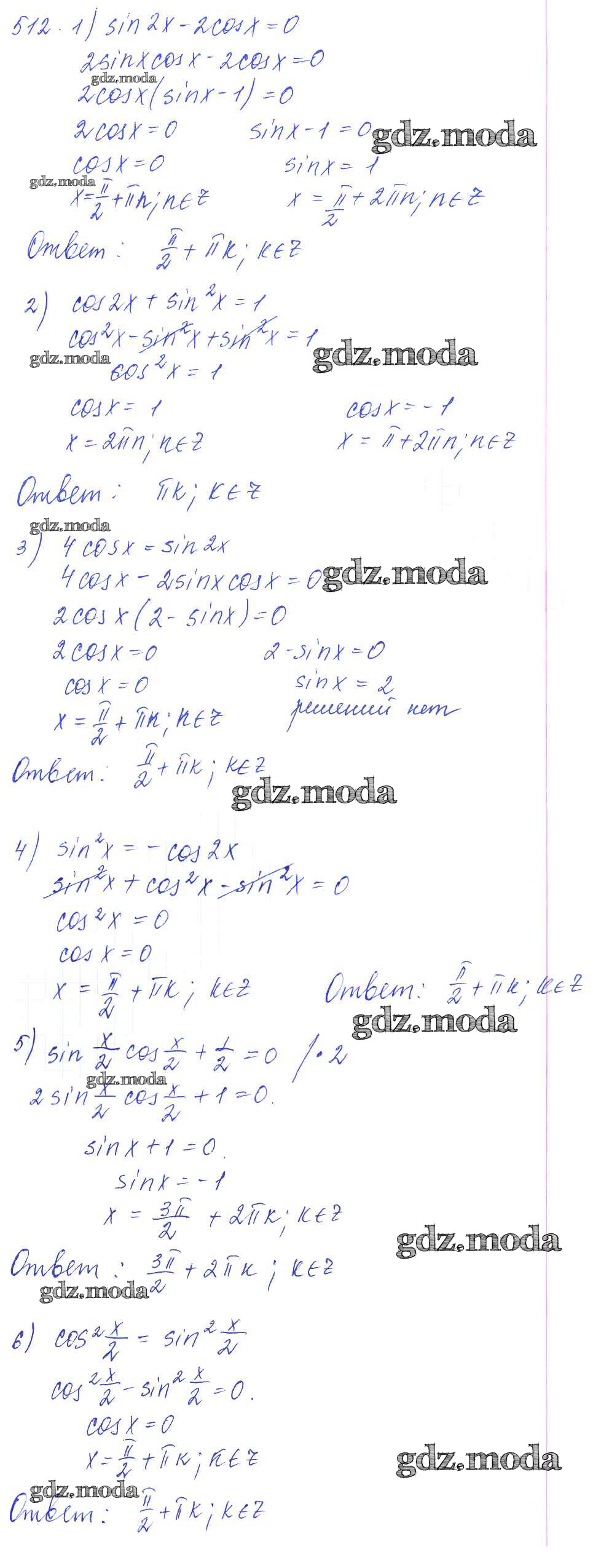 ГДЗ решение к заданию № 512 Алгебра и начала математического анализа 10-11 класс Базовый и углубленный уровни Алимов Ш.А. Просвещение 2015 Базовый и углубленный уровень ФГОС бесплатно на гдз.мода!