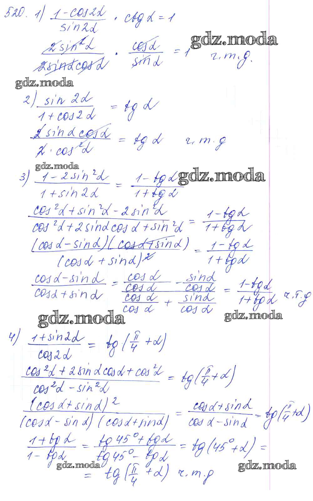 ГДЗ решение к заданию № 520 Алгебра и начала математического анализа 10-11 класс Базовый и углубленный уровни Алимов Ш.А. Просвещение 2015 Базовый и углубленный уровень ФГОС бесплатно на гдз.мода!