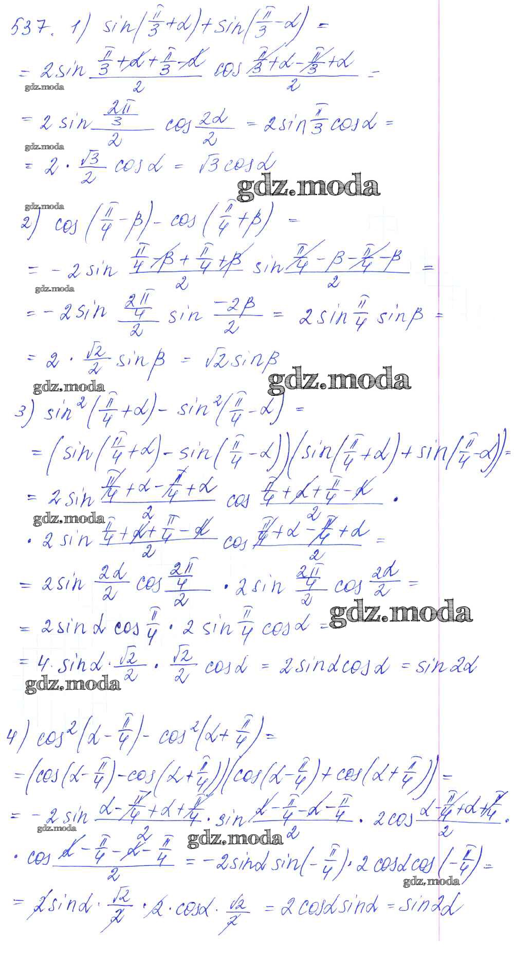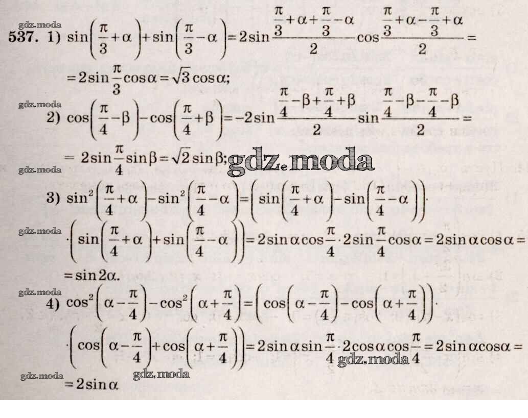 ГДЗ решение к заданию № 537 Алгебра и начала математического анализа 10-11 класс Базовый и углубленный уровни Алимов Ш.А. Просвещение 2015 Базовый и углубленный уровень ФГОС бесплатно на гдз.мода!