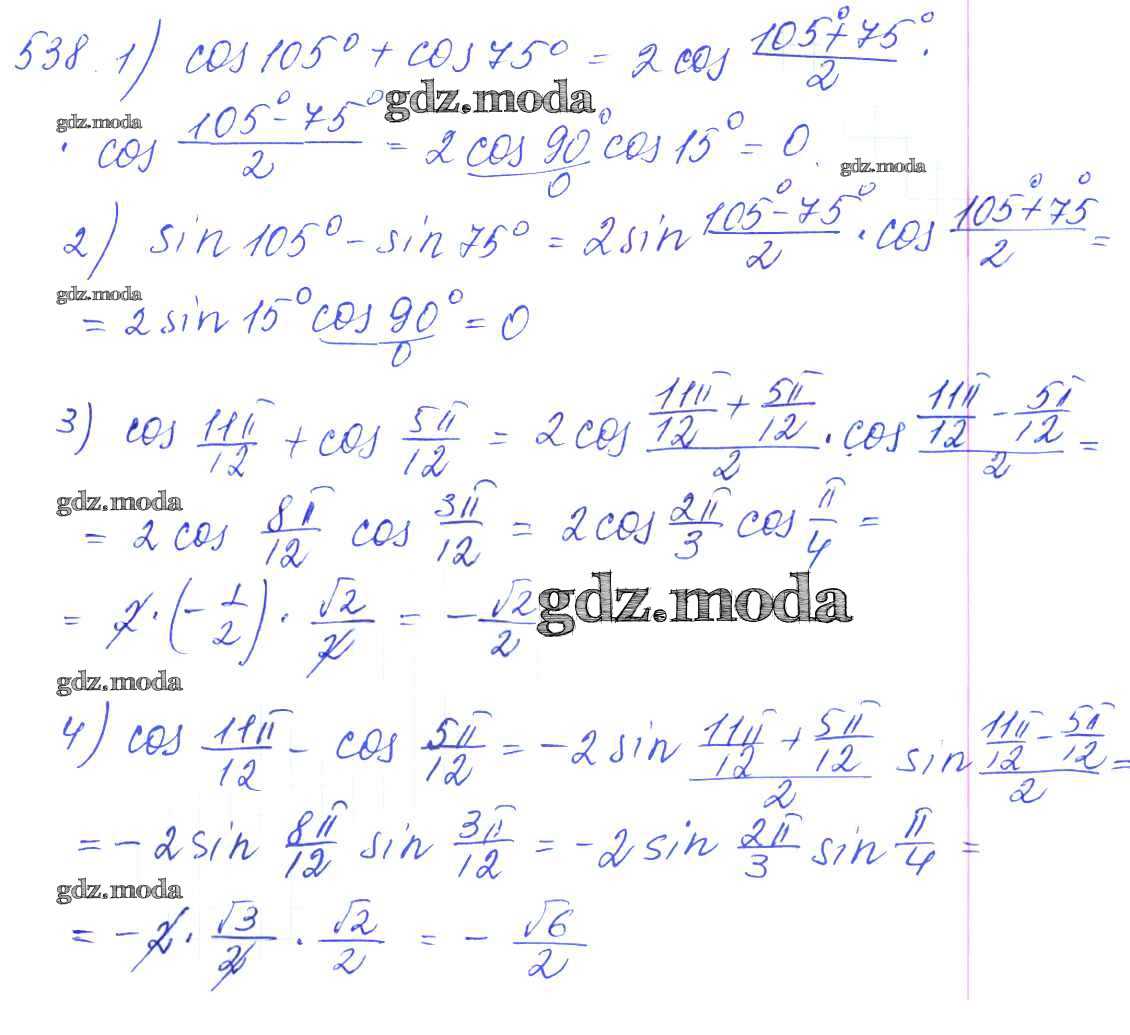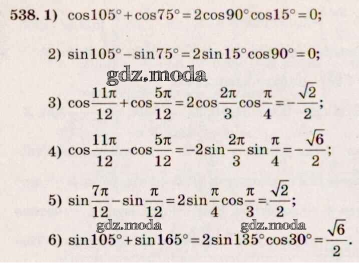 ГДЗ решение к заданию № 538 Алгебра и начала математического анализа 10-11 класс Базовый и углубленный уровни Алимов Ш.А. Просвещение 2015 Базовый и углубленный уровень ФГОС бесплатно на гдз.мода!