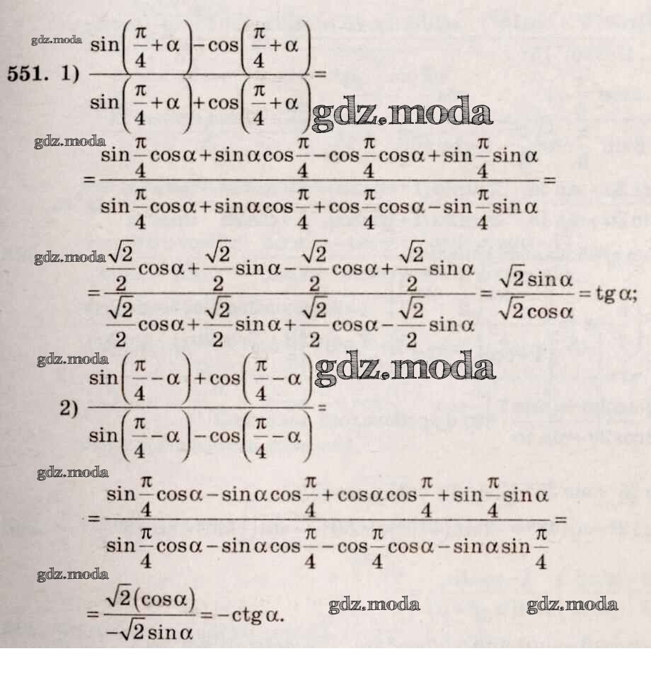 ГДЗ решение к заданию № 551 Алгебра и начала математического анализа 10-11 класс Базовый и углубленный уровни Алимов Ш.А. Просвещение 2015 Базовый и углубленный уровень ФГОС бесплатно на гдз.мода!