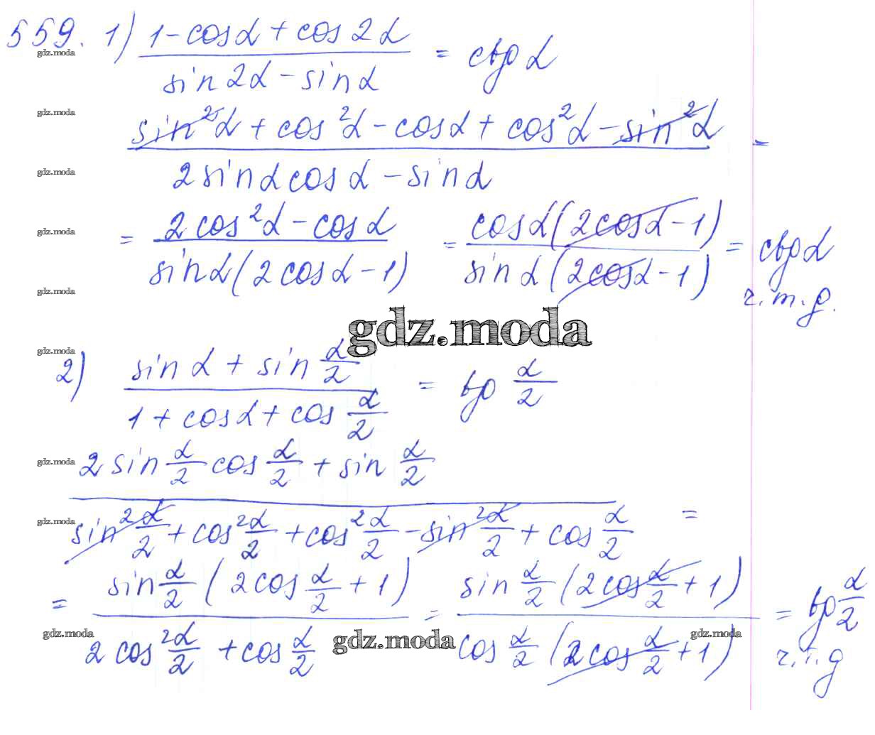 ГДЗ решение к заданию № 559 Алгебра и начала математического анализа 10-11 класс Базовый и углубленный уровни Алимов Ш.А. Просвещение 2015 Базовый и углубленный уровень ФГОС бесплатно на гдз.мода!
