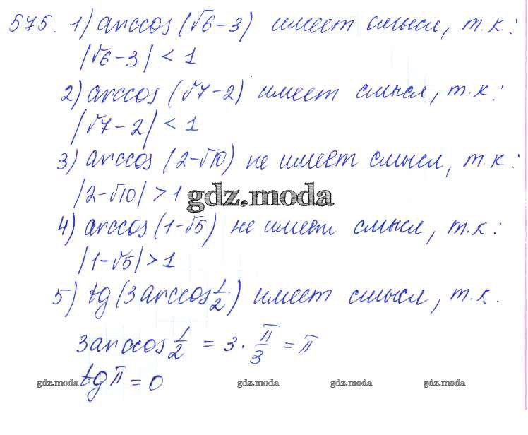 ГДЗ решение к заданию № 575 Алгебра и начала математического анализа 10-11 класс Базовый и углубленный уровни Алимов Ш.А. Просвещение 2015 Базовый и углубленный уровень ФГОС бесплатно на гдз.мода!