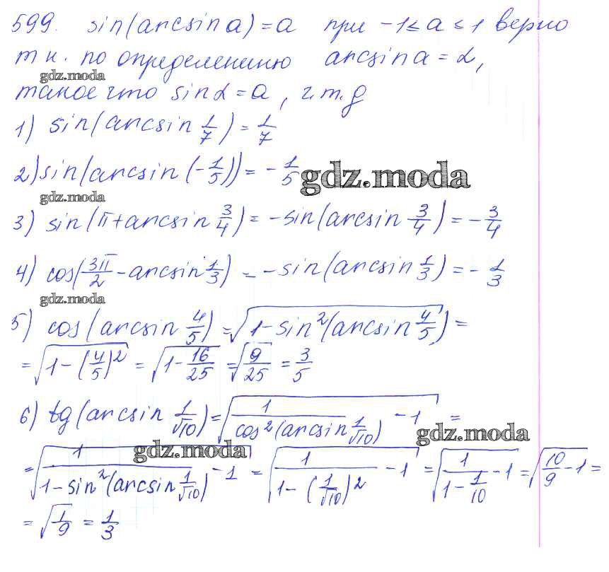 ГДЗ решение к заданию № 599 Алгебра и начала математического анализа 10-11 класс Базовый и углубленный уровни Алимов Ш.А. Просвещение 2015 Базовый и углубленный уровень ФГОС бесплатно на гдз.мода!