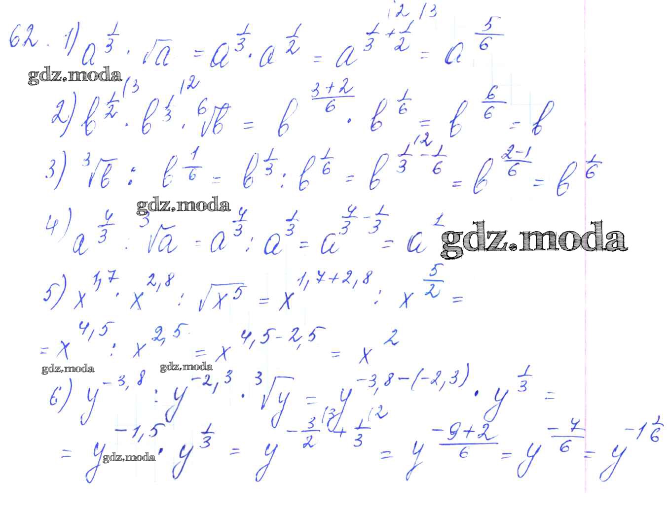 ГДЗ решение к заданию № 62 Алгебра и начала математического анализа 10-11 класс Базовый и углубленный уровни Алимов Ш.А. Просвещение 2015 Базовый и углубленный уровень ФГОС бесплатно на гдз.мода!