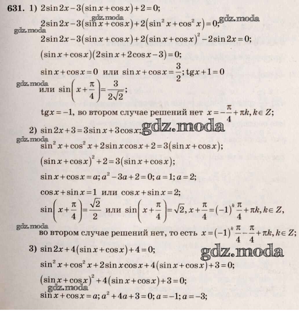 ГДЗ решение к заданию № 631 Алгебра и начала математического анализа 10-11 класс Базовый и углубленный уровни Алимов Ш.А. Просвещение 2015 Базовый и углубленный уровень ФГОС бесплатно на гдз.мода!