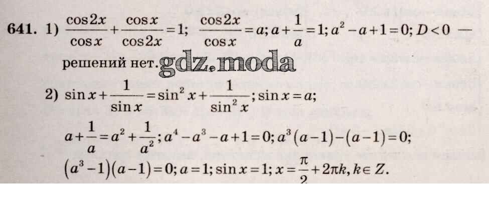 ГДЗ решение к заданию № 641 Алгебра и начала математического анализа 10-11 класс Базовый и углубленный уровни Алимов Ш.А. Просвещение 2015 Базовый и углубленный уровень ФГОС бесплатно на гдз.мода!