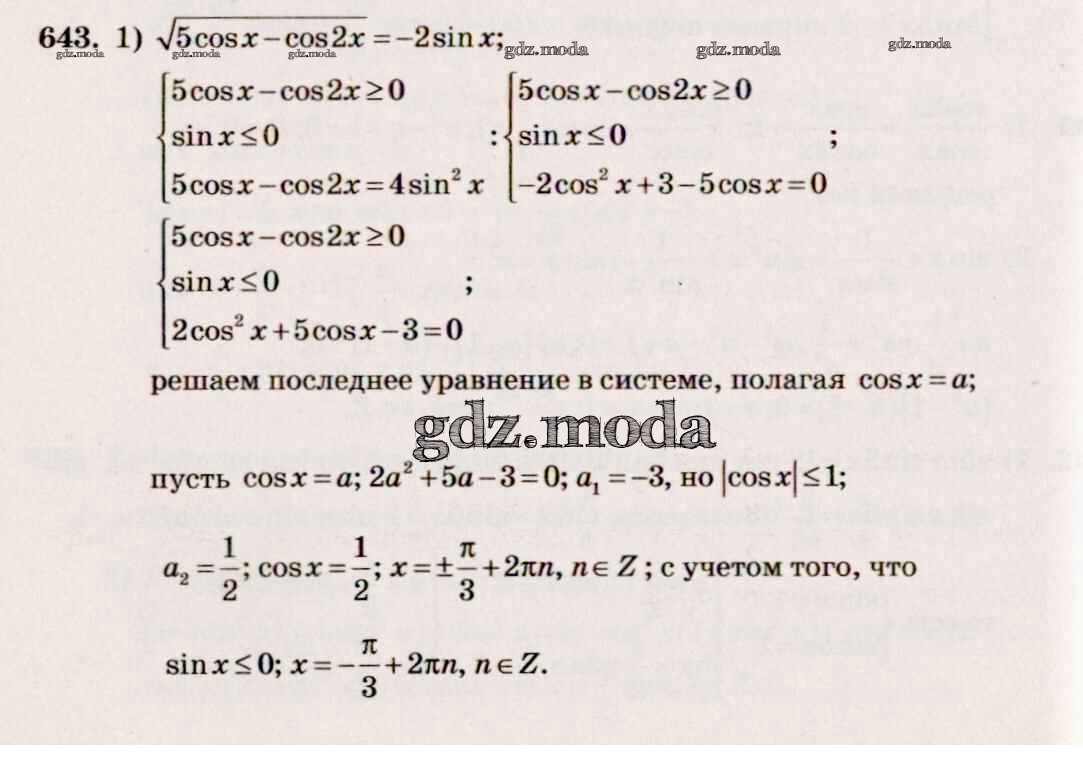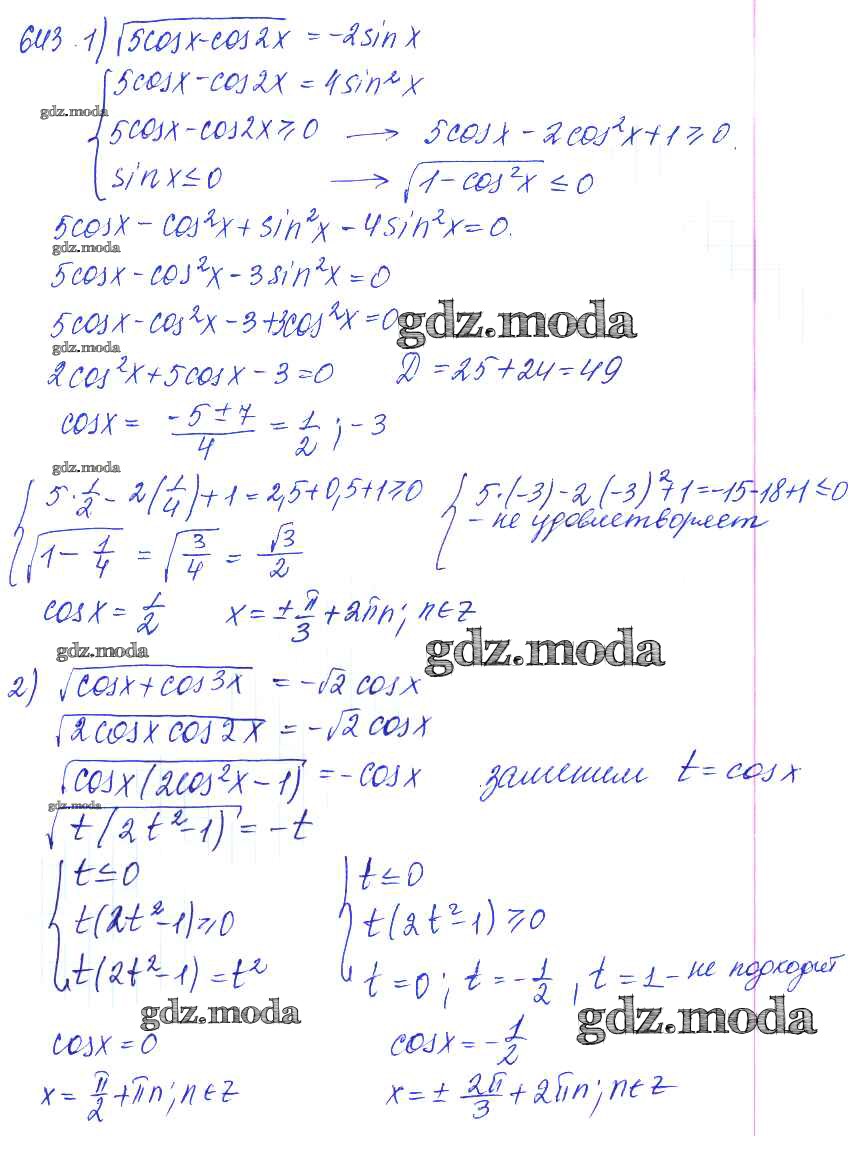 ГДЗ решение к заданию № 643 Алгебра и начала математического анализа 10-11 класс Базовый и углубленный уровни Алимов Ш.А. Просвещение 2015 Базовый и углубленный уровень ФГОС бесплатно на гдз.мода!