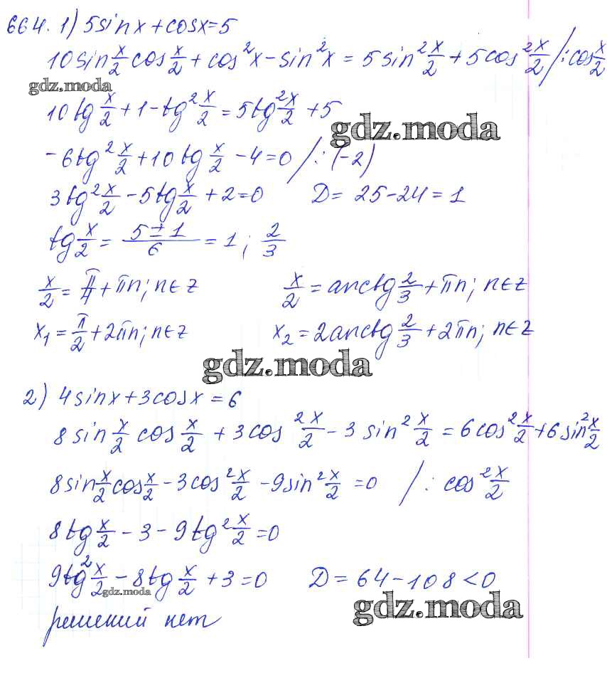 ГДЗ решение к заданию № 664 Алгебра и начала математического анализа 10-11 класс Базовый и углубленный уровни Алимов Ш.А. Просвещение 2015 Базовый и углубленный уровень ФГОС бесплатно на гдз.мода!