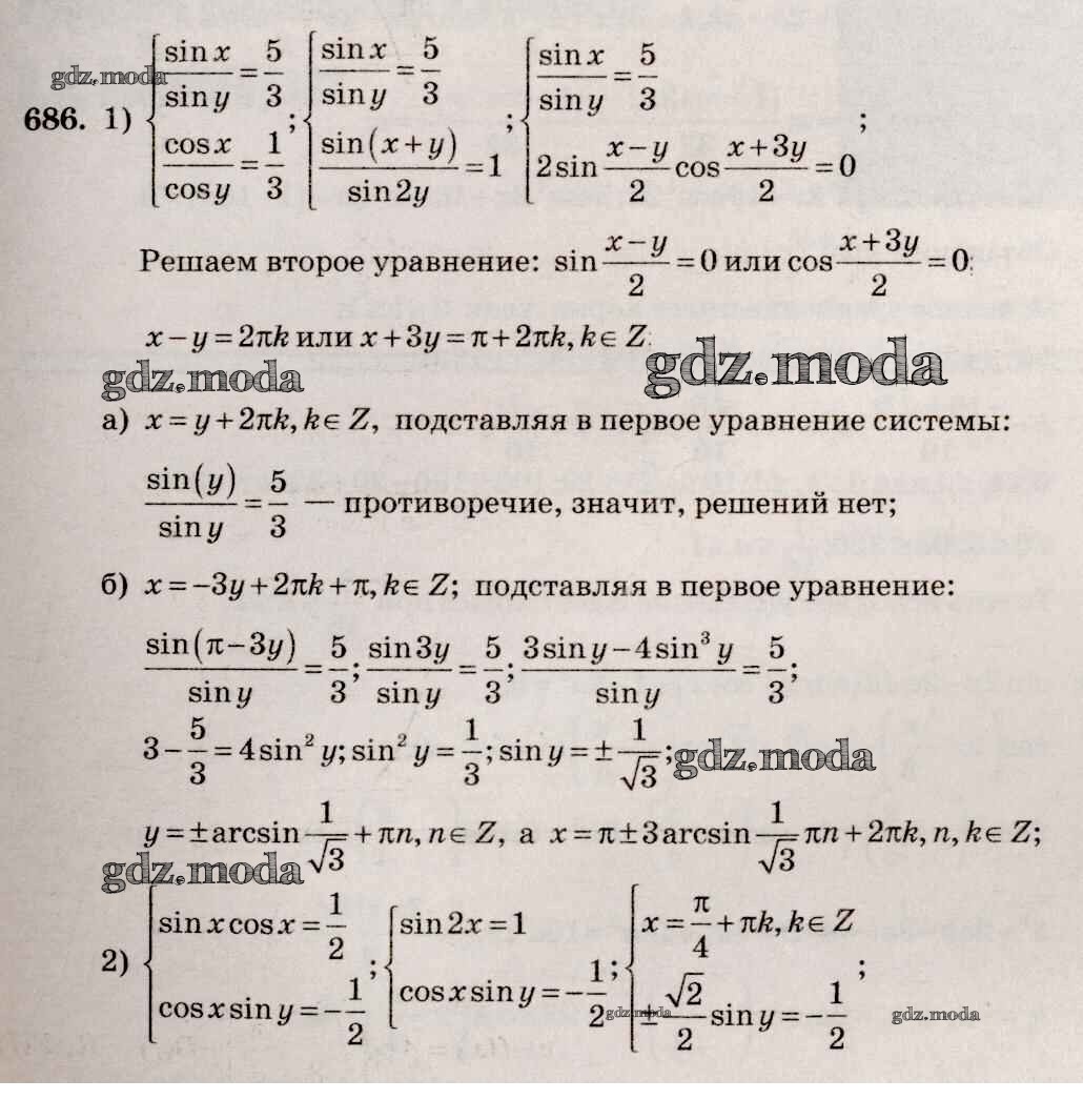ГДЗ решение к заданию № 686 Алгебра и начала математического анализа 10-11 класс Базовый и углубленный уровни Алимов Ш.А. Просвещение 2015 Базовый и углубленный уровень ФГОС бесплатно на гдз.мода!