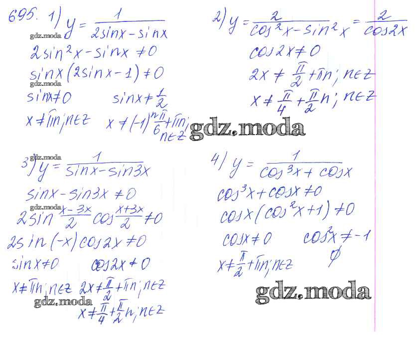 ГДЗ решение к заданию № 695 Алгебра и начала математического анализа 10-11 класс Базовый и углубленный уровни Алимов Ш.А. Просвещение 2015 Базовый и углубленный уровень ФГОС бесплатно на гдз.мода!