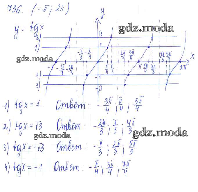 ГДЗ решение к заданию № 736 Алгебра и начала математического анализа 10-11 класс Базовый и углубленный уровни Алимов Ш.А. Просвещение 2015 Базовый и углубленный уровень ФГОС бесплатно на гдз.мода!