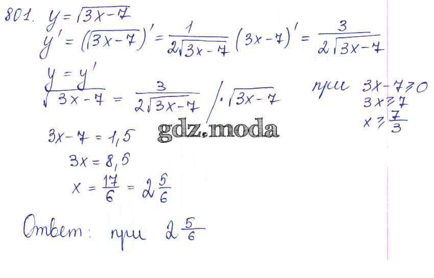 ОТВЕТ на задание № 801 Учебник по Алгебре 10-11 класс Алимов Базовый и углубленный уровень