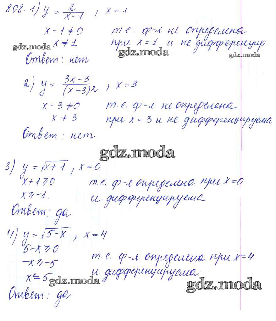 ОТВЕТ на задание № 808 Учебник по Алгебре 10-11 класс Алимов Базовый и углубленный уровень