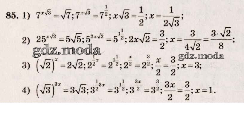 ГДЗ решение к заданию № 85 Алгебра и начала математического анализа 10-11 класс Базовый и углубленный уровни Алимов Ш.А. Просвещение 2015 Базовый и углубленный уровень ФГОС бесплатно на гдз.мода!