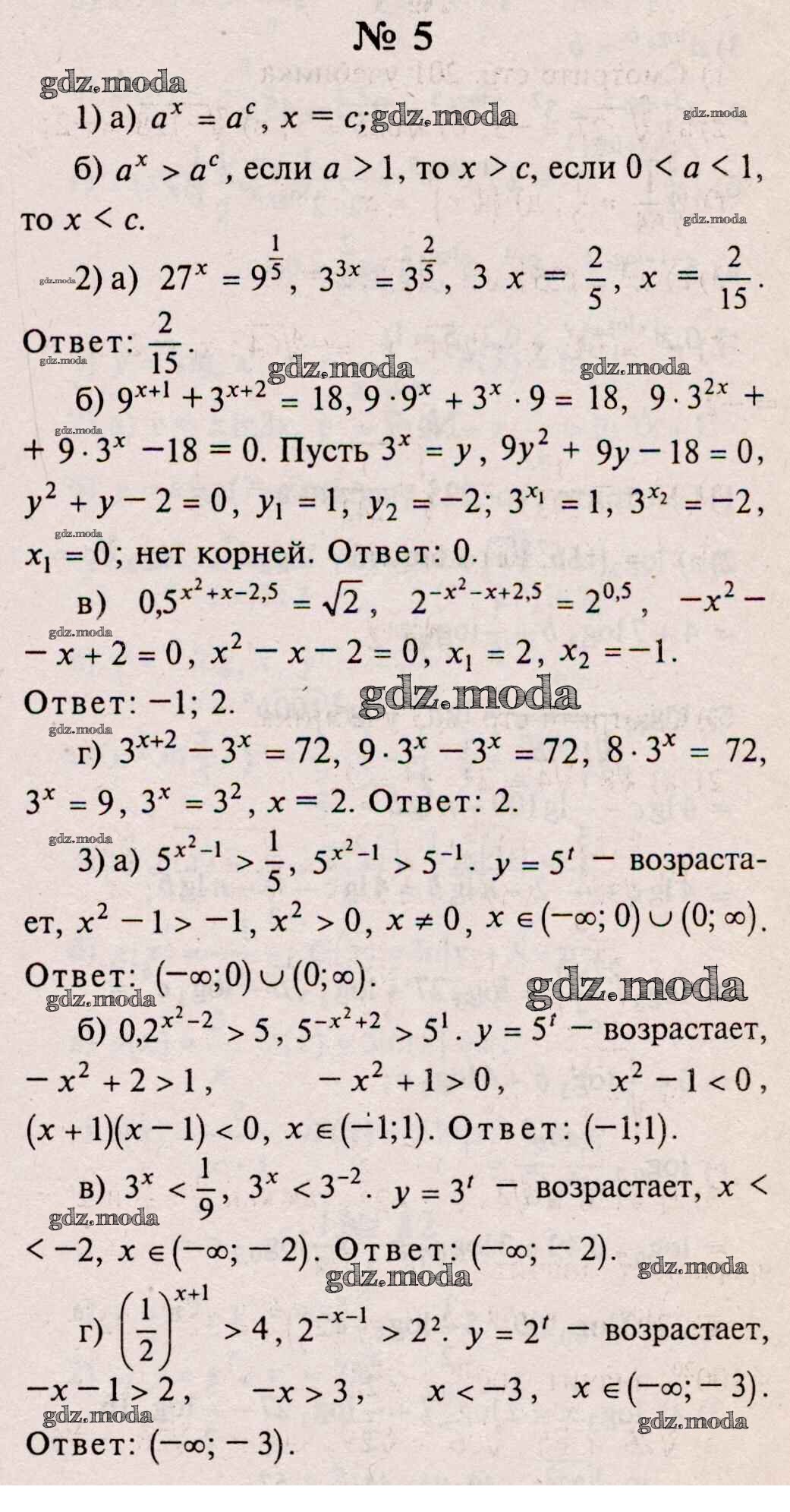 ГДЗ решение к заданию № 5 Алгебра и начала математического анализа 10-11 класс Колмогоров А.Н. Просвещение 2008 ФГОС бесплатно на гдз.мода!
