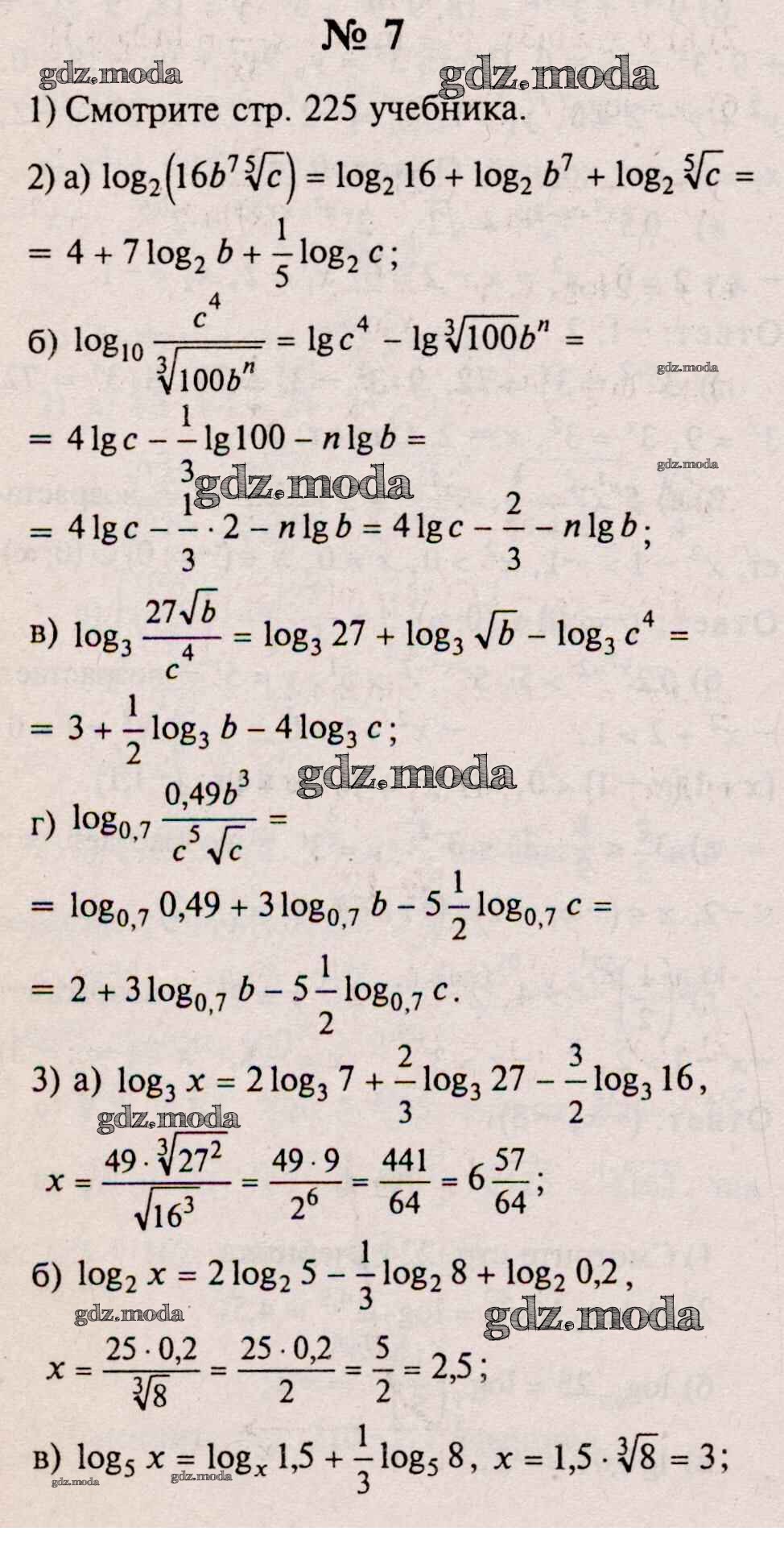 ГДЗ решение к заданию № 7 Алгебра и начала математического анализа 10-11 класс Колмогоров А.Н. Просвещение 2008 ФГОС бесплатно на гдз.мода!