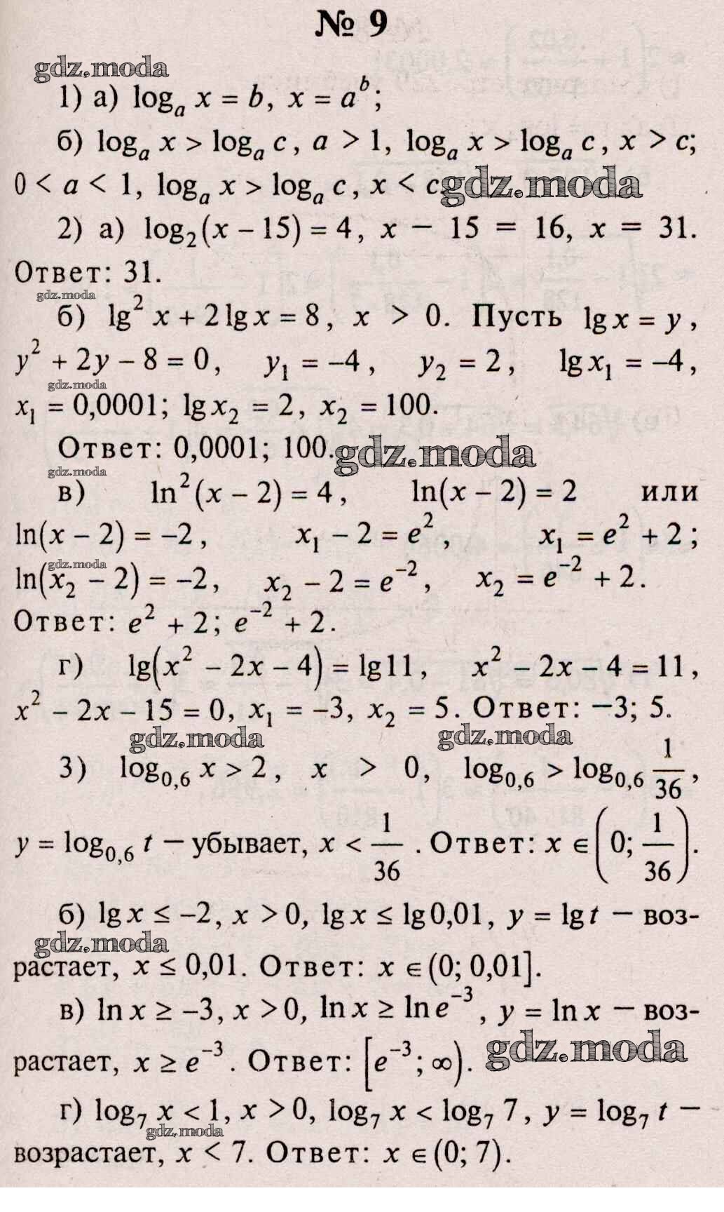 ГДЗ решение к заданию № 9 Алгебра и начала математического анализа 10-11 класс Колмогоров А.Н. Просвещение 2008 ФГОС бесплатно на гдз.мода!