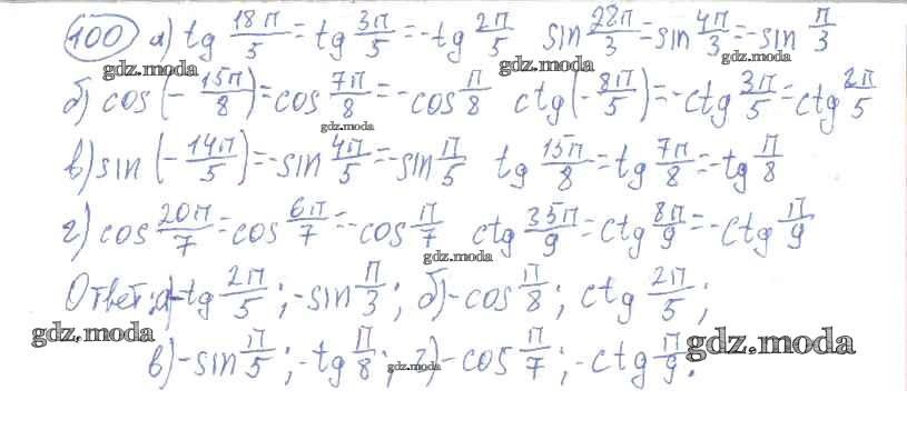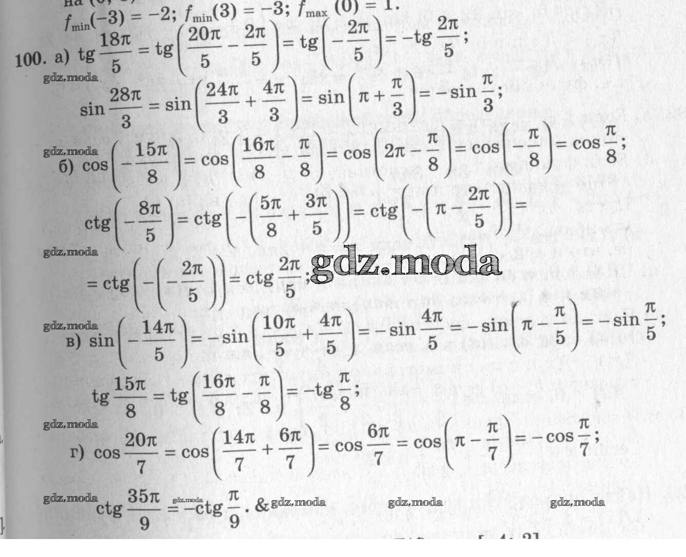 ГДЗ решение к заданию № 100 Алгебра и начала математического анализа 10-11 класс Колмогоров А.Н. Просвещение 2008 ФГОС бесплатно на гдз.мода!