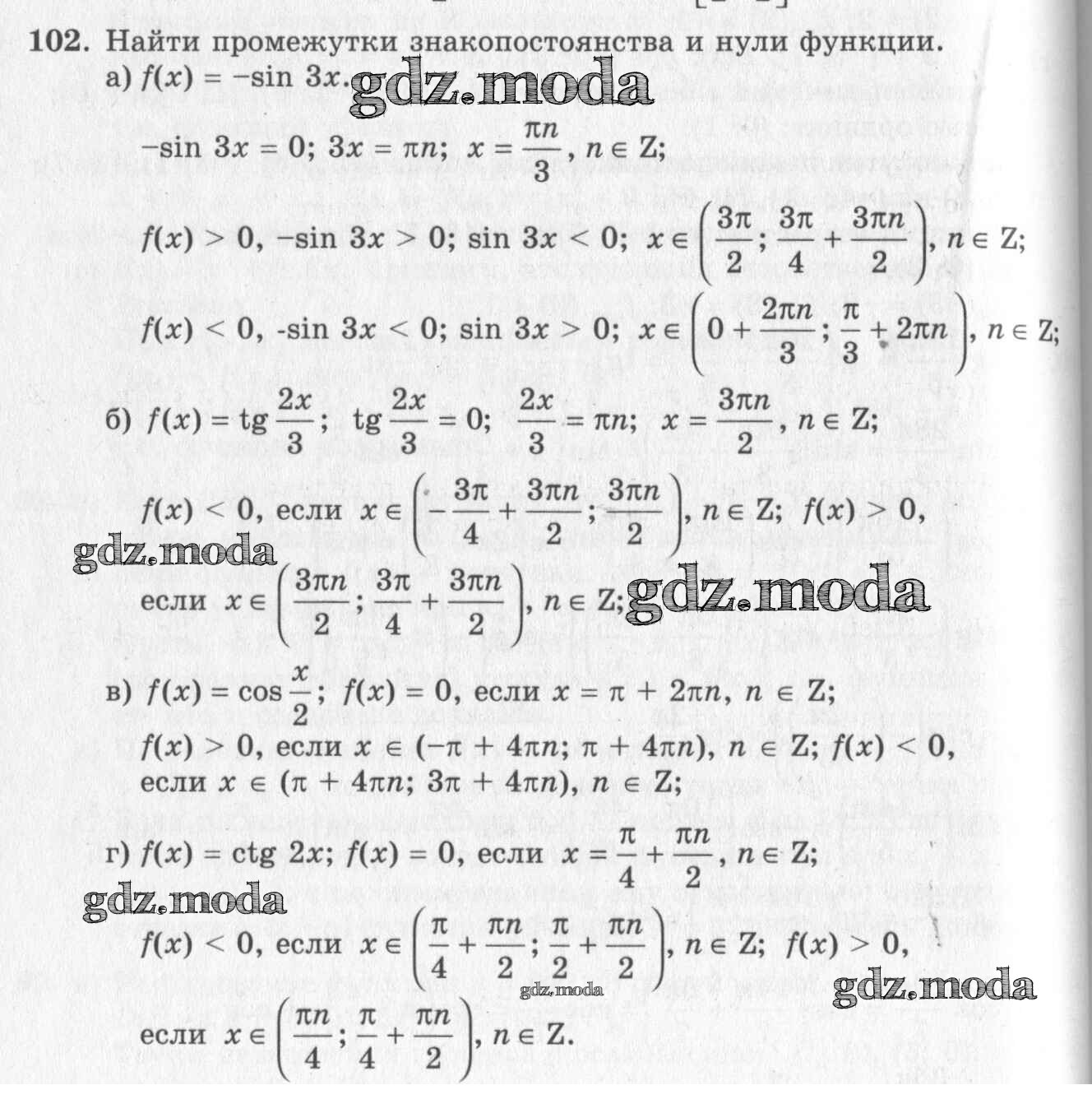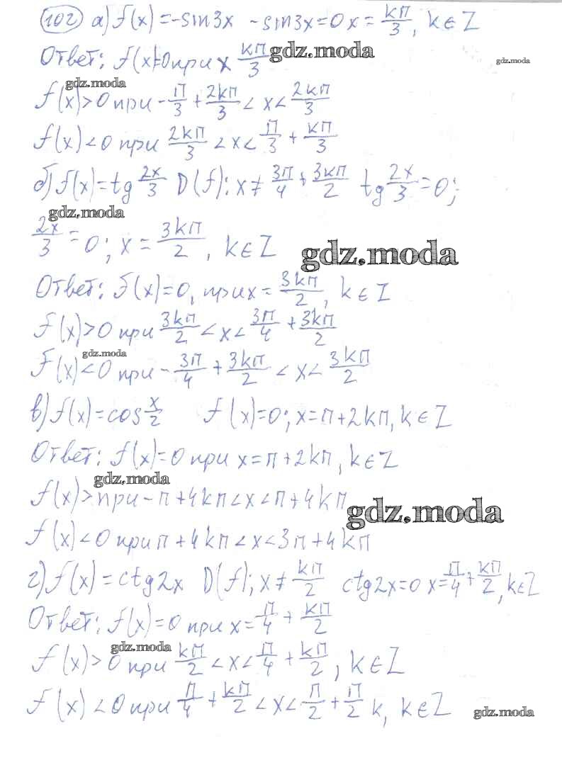 ГДЗ решение к заданию № 102 Алгебра и начала математического анализа 10-11 класс Колмогоров А.Н. Просвещение 2008 ФГОС бесплатно на гдз.мода!